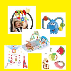 მნიშვნელოვანია, სათამაშოები შევარჩიოთ ისე, რომ შეეძლოს ხუთივე სენსორული არხის გააქტიურება. დაგვჭირდება: ჩხრიალები (სასურველია, სხვადასხვაგვარ ხმებს გამოსცემდნენ), საღეჭი სათამაშოები, სხვადასხვა ფაქტურის სათამაშოები, სუსტად მანათობელი (მკვეთრი ნათების სათამაშოებმა შეიძლება გამოიწვიოს ზედმეტი აღგზნება) ან მკვეთრი ფერის სათამაშოები, საწოლის თავზე დასამაგრებელი მბრუნავი სათამაშოები, რომელიც უკრავს სასიამოვნო მელოდიას (აჯობებს, არ იყოს სიმღერა, რადგან მსგავსი ქართულენოვანი სათამაშოები არ არსებობს, უცხო ენის მოსმენა კი არ არის რეკომენდირებული მეტყველების გამართულად დაწყებამდე). ხელის გაწვდენის მანძილზე ჩამოკიდეთ სათამშოები რეზინზე, რომელსაც მოქაჩავს და მიიტანს სახესთან ახლოს.